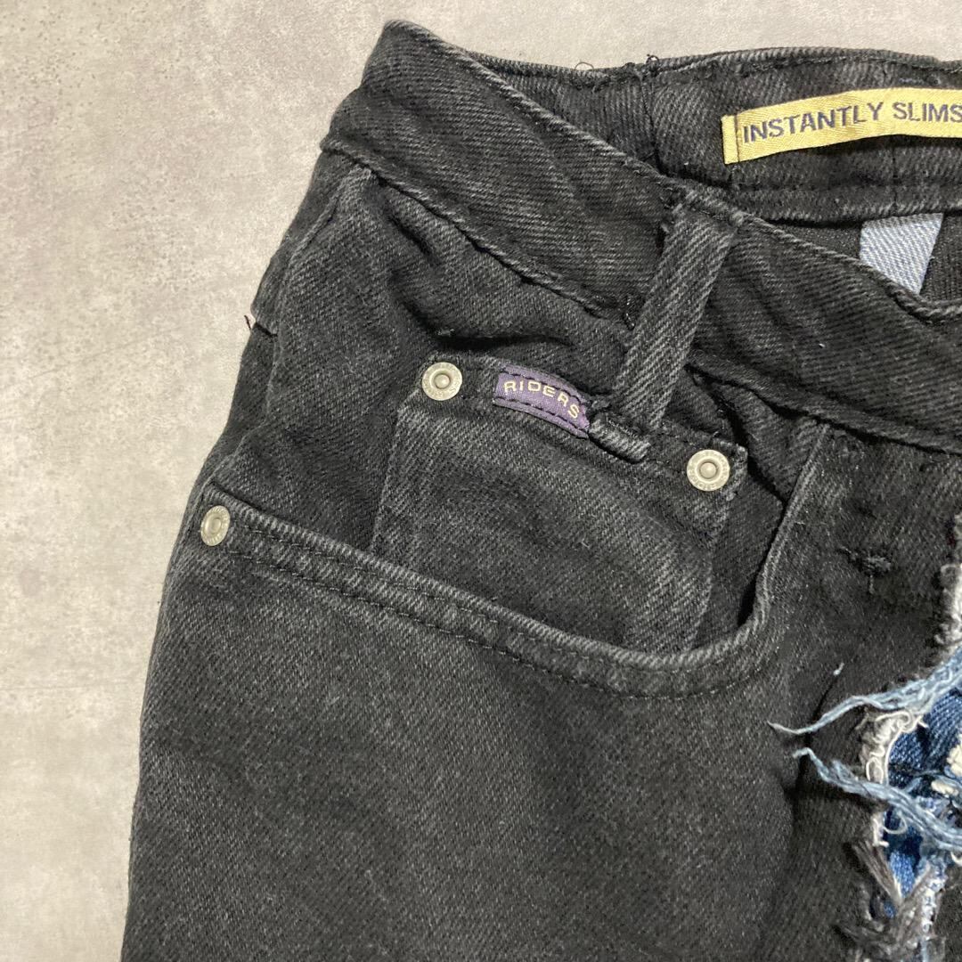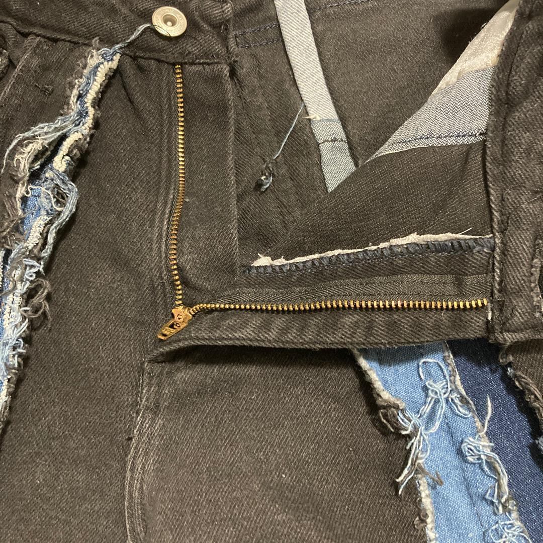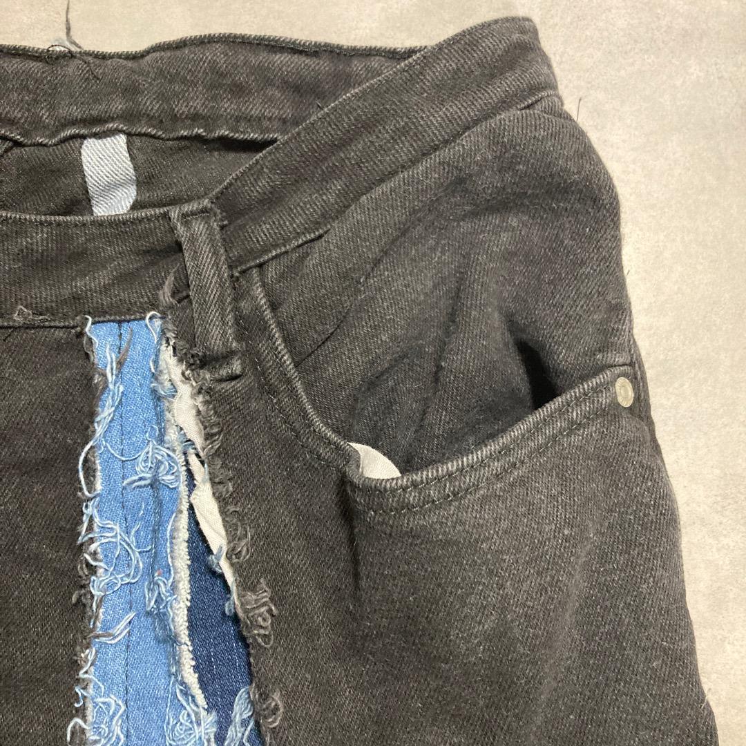 リメイクデニム ブルーデニム ワイド フレア 再構築 M 黒 青 14324