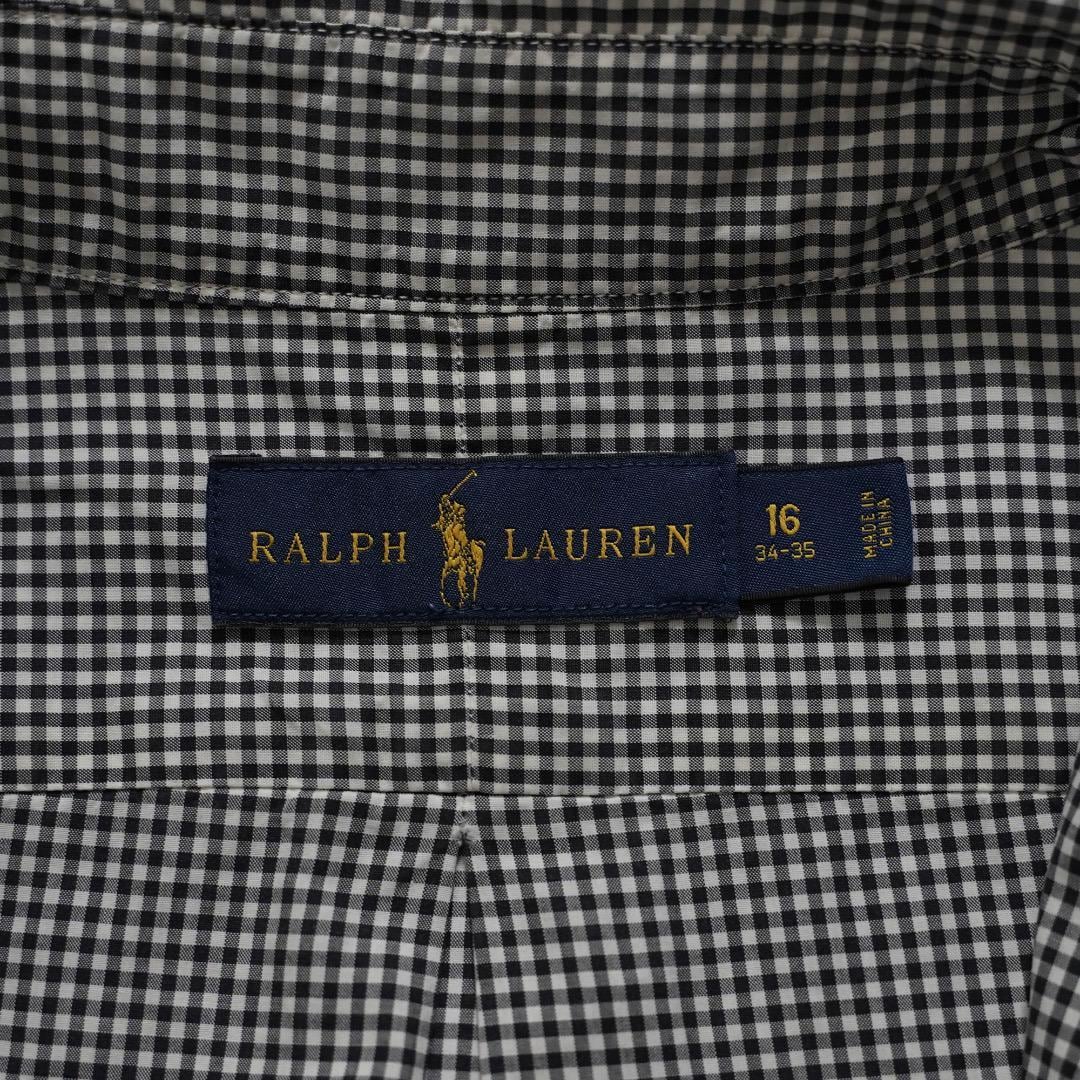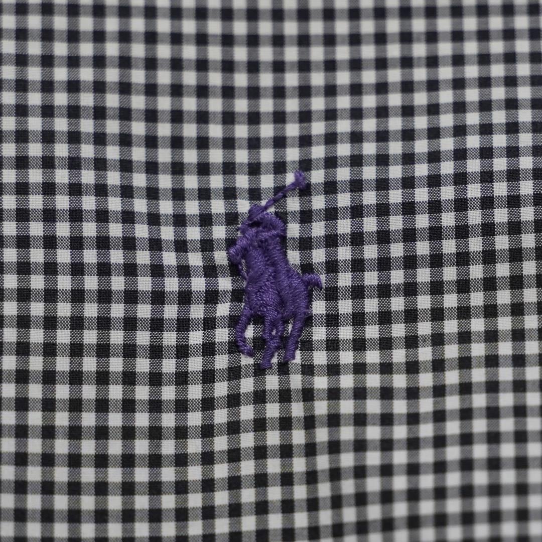 ラルフローレン チェックシャツ 古着 ポニー 刺繍 L 黒 白 16256