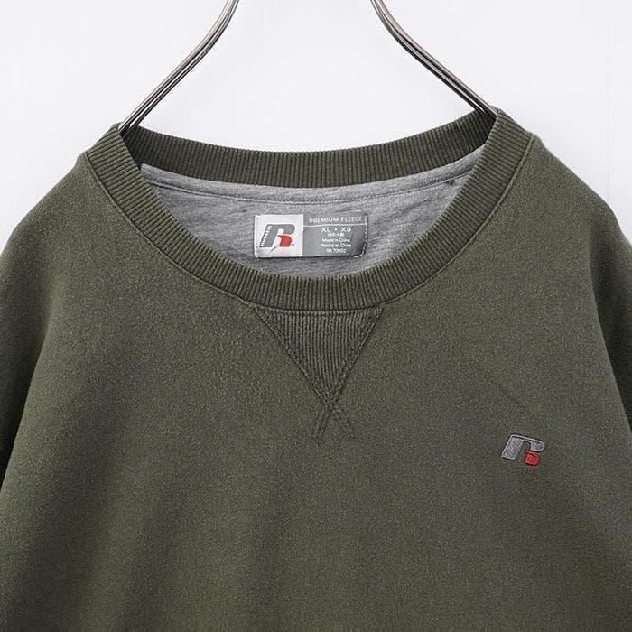 ラッセルアスレチック スウェット 古着 刺繍 無地 XL カーキ 緑 12609