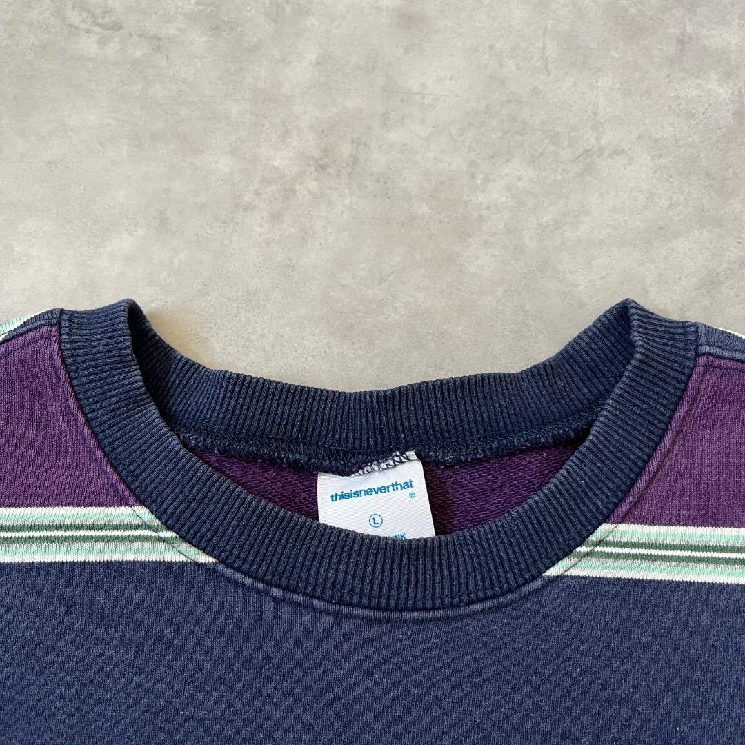 ディスイズネバーザット ネバザ スウェット 古着 ボーダー ロゴ L 紺 紫