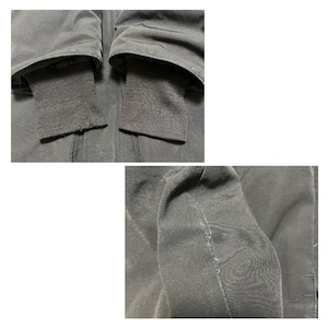 全面下部や袖に目立たないテカリあり。