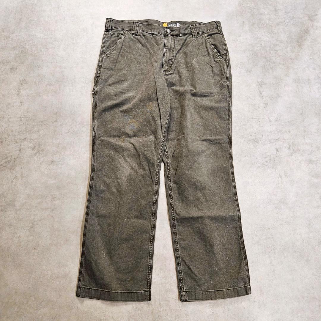 カーハート W38 ダックパンツ ペインター 古着 ロゴ グレー 17997
