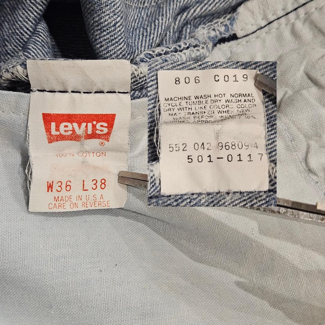 リーバイス501 W36 ヒゲ ハチノス 古着 青 USA製 90s 18558