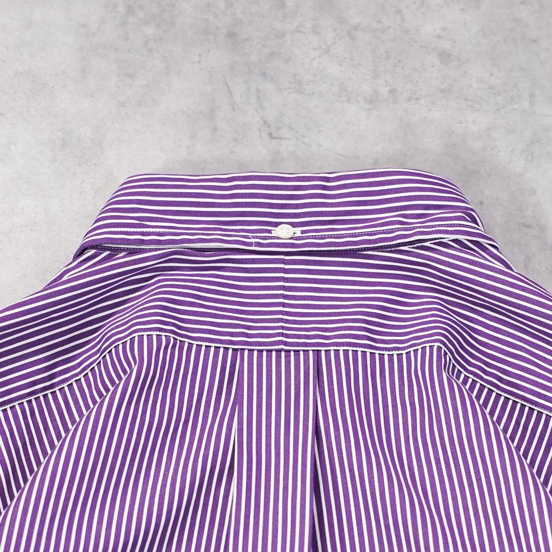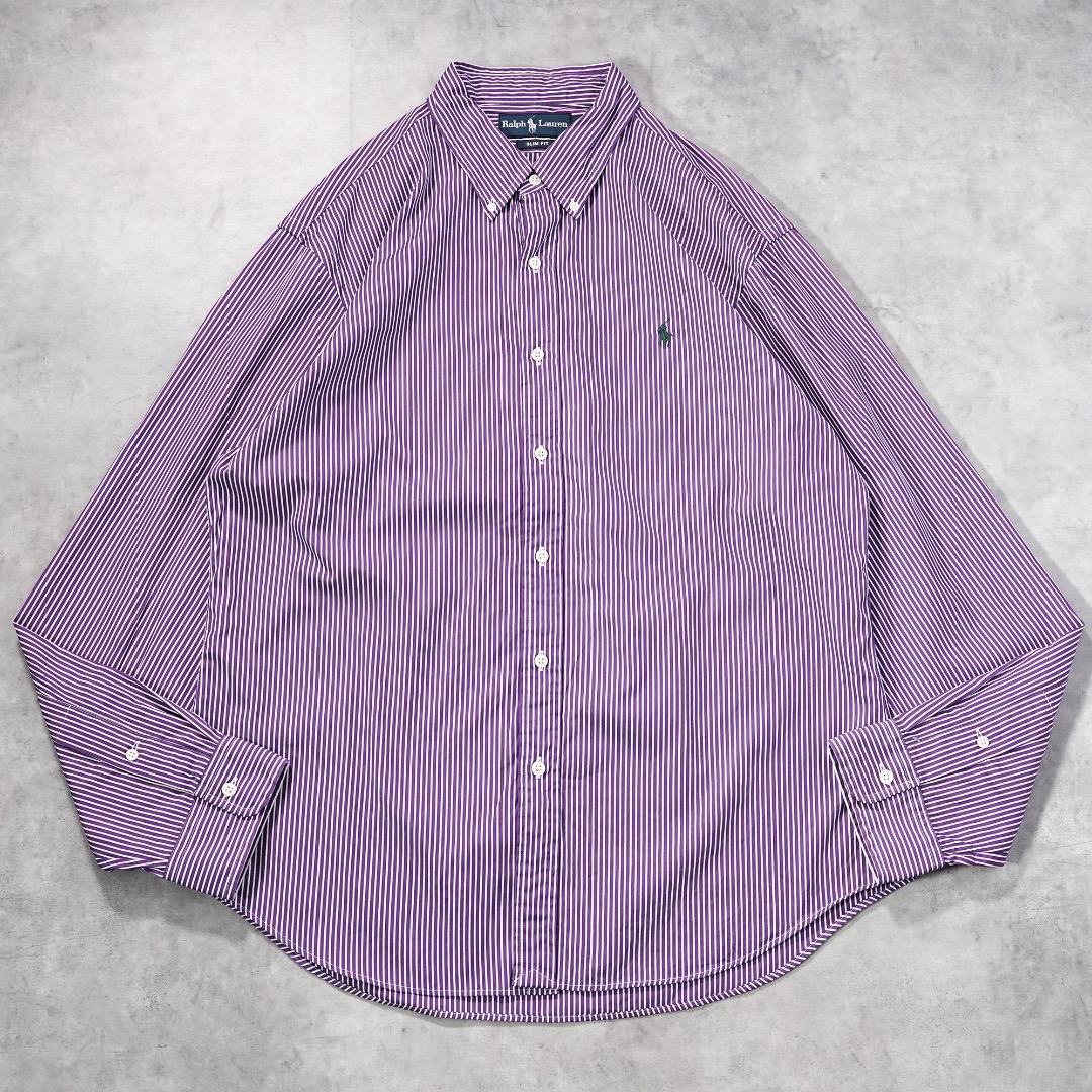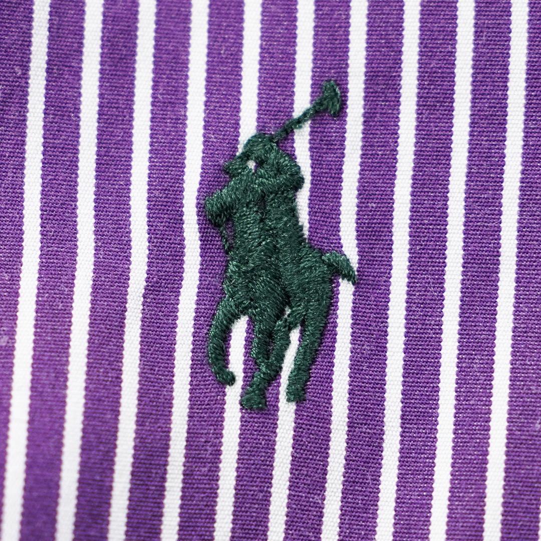 ラルフローレン ストライプシャツ 古着 ポニー 刺繍 XL 紫 白 19628