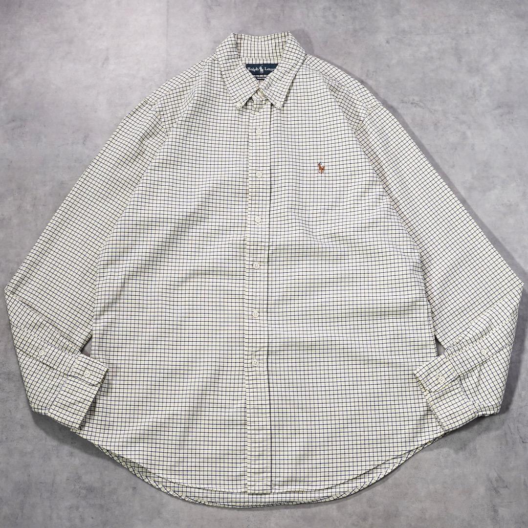 ラルフローレン チェックシャツ 古着 ポニー 刺繍 L 黄 紺 19630