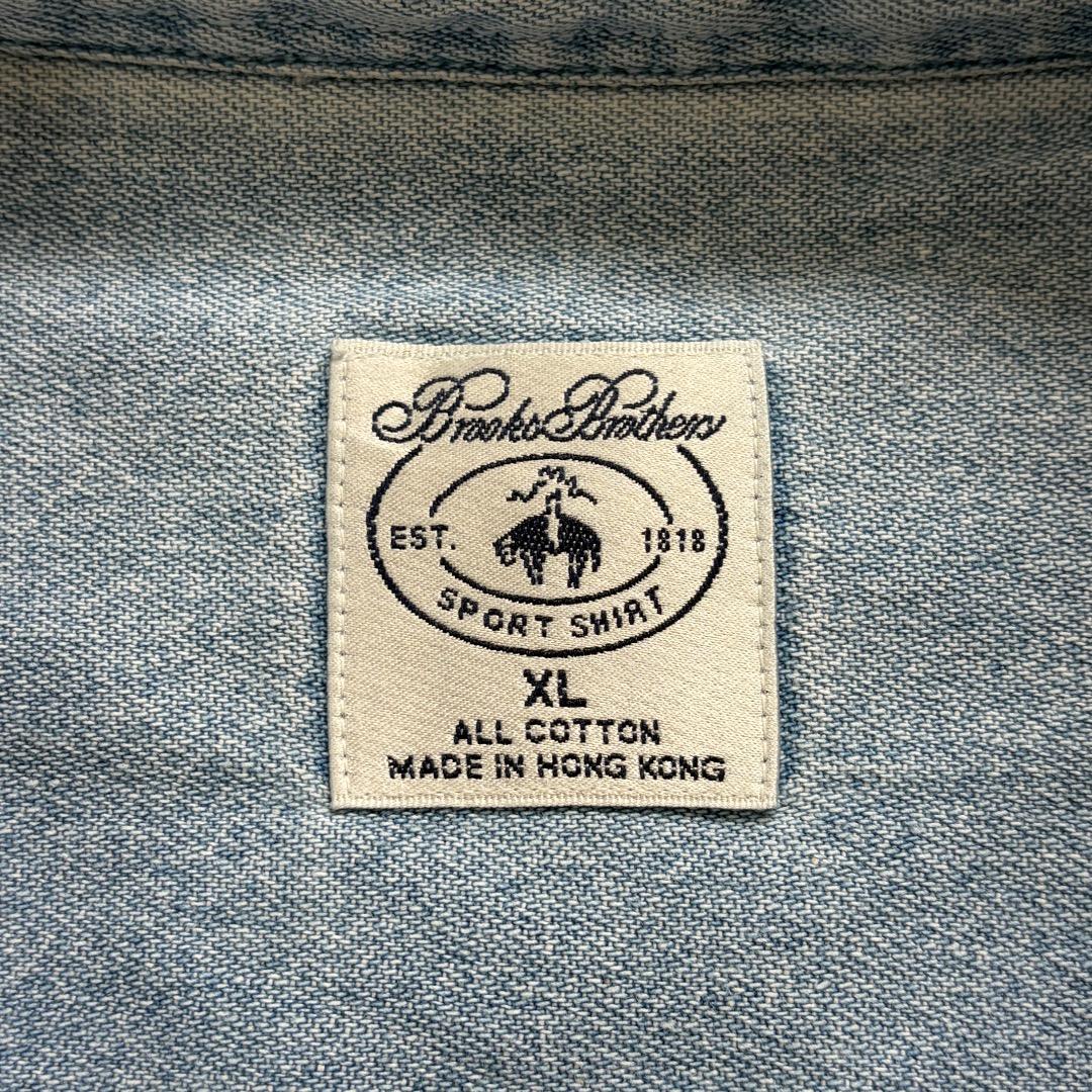 ブルックスブラザーズ デニムシャツ 胸ポケット 無地 古着 XL 青 20295