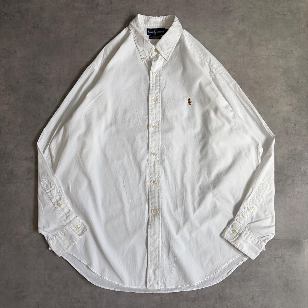 ラルフローレン 無地シャツ 古着 90s ポニー 刺繍 XL 白 20313
