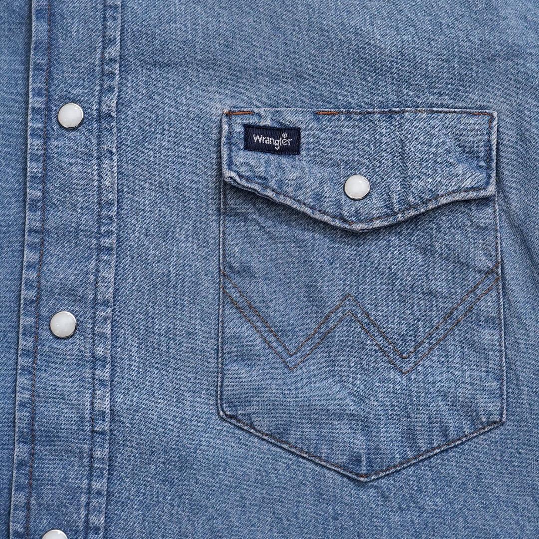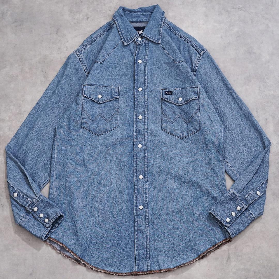 ラングラー デニムシャツ ウエスタンシャツ ブルー 古着 M 青 20557