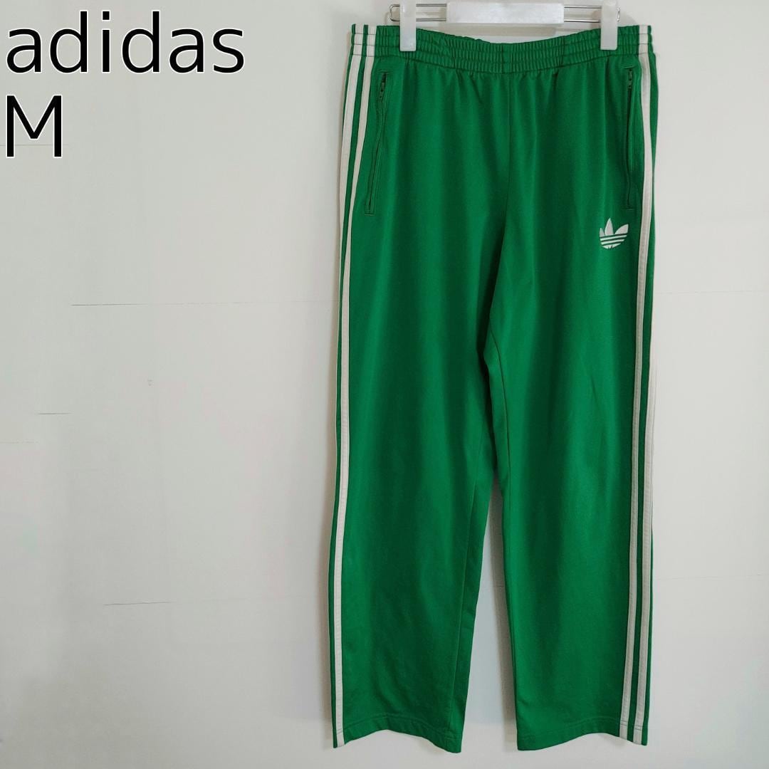 adidas アディダス トラックパンツ トレフォイル ロゴ刺繍 M 緑 白